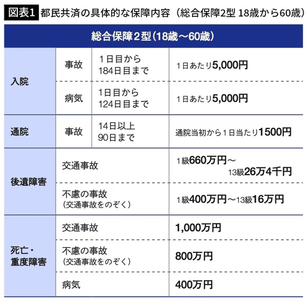 【図表1】都民共済の具体的な保障内容(総合保障2型 18歳から60歳)
