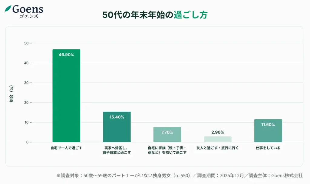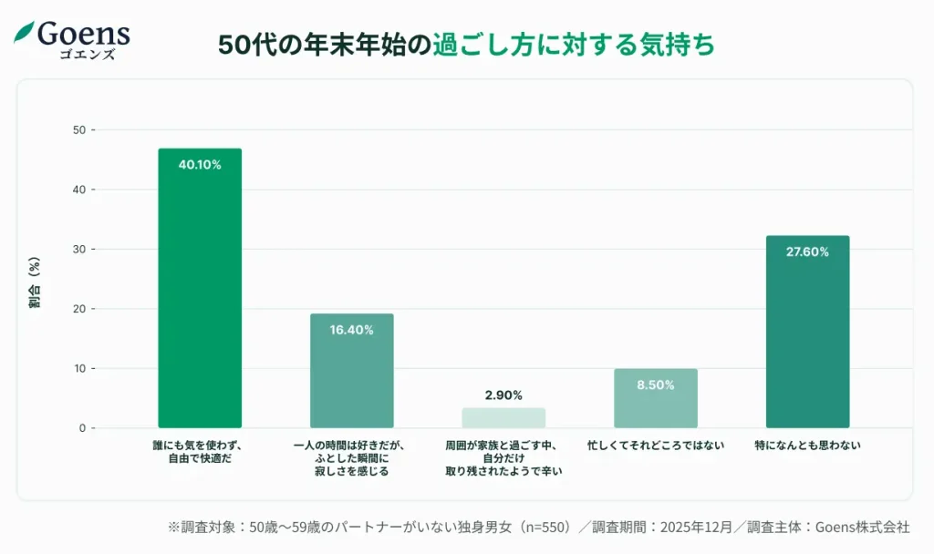50代独身の年末年始、46.9%が単独で過ごすも「寂しい」派はわずか2.9%